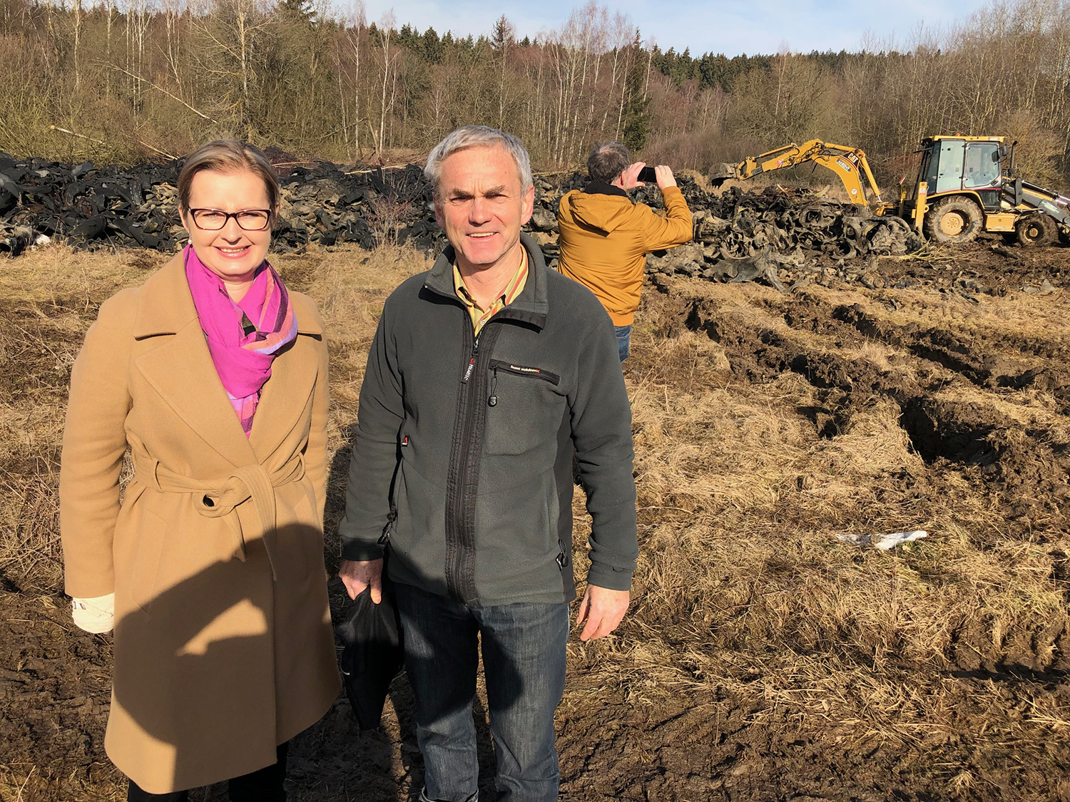 Kontrolní den na jedné z největších skládek s pneumatikami v Plzeňském kraji – v Chodové Plané. Plzeňský kraj se rozhodl černou skládku odstranit.
