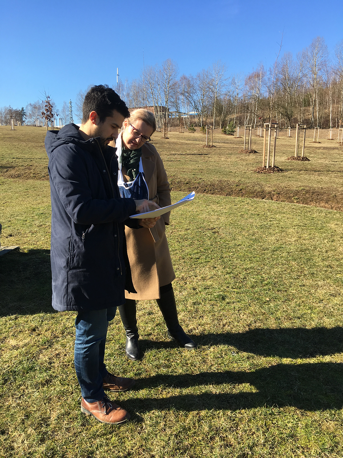 Radní PK Radka Trylčová navštívila obec Tlučnou, držitelku ocenění Zelenou stuhou v soutěži Vesnice roku 2018 za péči o zeleň a životní prostředí. Na snímku radní se starostou obce při prohlídce nově osázeného lesoparku na místě bývalé výsypky – po bývalé důlní činnosti zde již není téměř ani stopy.